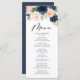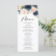 Menu Casamento Floral de Marinho e Blush de Aquarela Ru