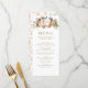 Incêndio aos seus convidados com este cardápio elegante com flores bonitas e folhas de pínus rústicas.