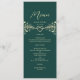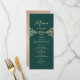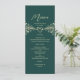 Cartão de noiva esmeralda verde e dourado com detalhes florais delicados e um design de corda romântico. Perfeito para recepções formais, queda ou casamentos no inverno, e jantadas sofisticadas de banquete. Personalize com seus nomes, data e seleções de menu personalizadas para criar um toque exclusivo para seu dia especial. Coordena-se perfeitamente com convites para casamento, placas e artigos de papelaria emerald e ouro da mesma coleção.