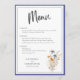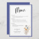 Este Menu de Casamento Floral Elegante de Flores Azuis apresenta lindas flores silvestres azuis, amarelas e roxas, tipografia moderna e a cor azul macia para coordenar com a decoração do casamento. Seu convidado vai adorar ter uma escolha de refeição no seu casamento. Este item coordena-se com o Pacote de Convite para Casamento Elegante Blue Wildflower. #wildflow #bluecasamento #formalcasamento #elegantcasamento #floralcasamento
