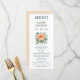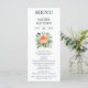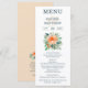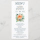 Elegante cor d'água floral em tons de pêssego a laranja e lacre a folha verde de jade com os detalhes do menu de recepção de casamento em letra chic com seus nomes e data de casamento no topo. Mude o fundo branco para qualquer cor para corresponder ao tema do casamento. COORDENANDO convites, cartões RSVP, cartões de recepção, obrigado a registrar e mais itens disponíveis em nossa loja para completar seu conjunto de convites.