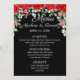 Capture o amor e as memórias do seu grande dia com este design elegante. Com um fundo preto impressionante adorado com rosas vermelhas profundas e verde macio, esta design adiciona um toque romântico e eterno à sua celebração.