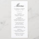 Crie uma experiência fantástica de jantar com o nosso menu de casamento Floral de Chinoiserie Negra Elegante. Apresentando uma elegante caligrafia preta em um fundo branco nítido, este menu personalizável permite que os casais adicionem seus nomes, data de casamento e ofertas de menu personalizadas. O verso mostra um lindo padrão floral Chinoiserie preto e branco, adicionando um eterno e sofisticado toque à sua decoração de recepção. Perfeito para elevar sua mesa de casamento com estilo e elegância.
