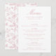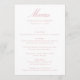 Elevem a recepção de casamento com o menu de casamento Floral da Chinoiserie, Rosa Elegante. Projetado com uma caligrafia rosada e empoeirada rosa num fundo branco limpo, este menu é totalmente personalizável com seus nomes, data de casamento e detalhes do menu. O verso apresenta um rosa empoeirado e elegante padrão floral Chinoiserie branco, adicionando um toque de elegância clássica à sua decoração de mesa. Uma maneira perfeita de complementar seu dia especial com estilo personalizado e sofisticação.