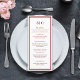 Melhore a experiência de jantar de recepção com o Menu de Casamento Formal Clássico Burgundy & Gold Monogram, uma peça sofisticada que combina estilo, clareza e personalização em um design elegante. Criado com um rico fundo burgundy e acentuado por uma tipografia dourada refinada, este menu apresenta um monograma personalizado que traz um toque coeso e luxuoso à sua mesa de casamento. Pensado para apresentar os pratos de forma limpa e fácil de ler, permite que os convidados apreciem e antecipem cada parte da refeição, ao mesmo tempo em que adiciona um elemento decorativo à sua configuração de mesa. A paleta de cores atemporal burgundy e dourada evoca romance e charme clássico, tornando-a uma escolha perfeita para casamentos formais, tradicionais ou noturnos. Totalmente personalizável com seus nomes, data de casamento e detalhes do menu, este menu de casamento transforma uma necessidade prática em um souvenir significativo que reflete sua atenção aos detalhes. Ideal para casais que valorizam tanto a estética quanto a experiência dos convidados, adiciona elegância a cada mesa e deixa uma impressão duradoura de uma celebração cuidadosamente curada.