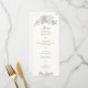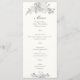 Uma elegante e sofisticada peça companheira de convite formal para o casamento: o cardápio, que apresenta caligrafia elegante com floreados delicados e um fundo branco pérola, assim como sotaque floral impermeável com peonias de declaração e outras flores para casamentos e verde. Este clássico e tradicional cartão de cardápio de casamento é uma escolha encantadora para casais que amam arte fina, designs de arte, arte única e original e designs de casamento tradicionais e formais. Personalize cada linha de texto. Itens correspondentes disponíveis.
