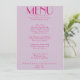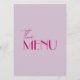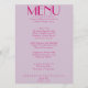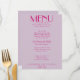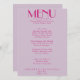 Um retro fedorento, moderno e brilhante menu de janto de casamento. Que apresenta modelo de chic de fundo de lavanda de vintage de boho e tipografia rosa e menu escrito à mão em rosa. Perfeito e compatível com toda a suíte.