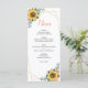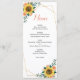 Estes elegantes menus de casamento apresentam um design floral de cor d'água com rosas de coral de pêssego e borda geométrica falsa de ouro. Personalize o texto com seus nomes e menu. Produtos correspondentes também disponíveis.