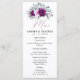 Esta placa de menu elegante apresenta um design rústico com flores roxas e pinceladas no topo. O layout geométrico adiciona um toque moderno, e a letra simples é fácil de ler. É perfeito para um casamento de na moda e ajudará os hóspedes a saberem o que a comida deliciosa espera.