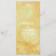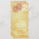 Menu de Comida de Casamento "Golds Asiáticos Influenciados de Amarelos" Amarelos pintados de forma grosseira, ouro e magenta sobrepostos com aves pintadas e flores de cor macia. Personalize este menu de comida de casamento. Simplesmente exclua o texto em ambos os lados do cartão de menu e substitua por suas próprias palavras. Escolha seu estilo, cor e tamanho de fonte favoritos. Os elementos da flor podem ser movidos, eliminados e/ou ajustados! Obrigados para parar e comprar! Muito apreciado! Feliz Dia de Casamento! Estilo: 4" x 9" Impresso em estoque de cartão branco de 100 lb com acabamento de brilho Impressão de alta qualidade, cor de cheio e sangramento de cheio