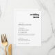 Menu de casamento simples e elegante em um estilo de design minimalista moderno com uma tipografia retrô em preto e branco clássico escrito em um estilo casual informal. O texto pode ser facilmente personalizado para um design único para o seu dia especial. Se precisar de ajuda para personalizar este produto, por favor entre em contato comigo usando o botão de mensagem abaixo e ficarei feliz em ajudar.