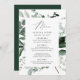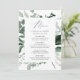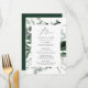 Menu de casamento elegante com "Menu" exibido em um script de caligrafia moderno e detalhes de menu enquadrado por eucalipto, samambaia e outros ricos verdes em fundo branco. Personalize o menu de casamento botânico com seus nomes, data de casamento e menu janto. O menu de casamento simples reverte para um fundo verde escuro sólido com espaço para fotos e texto adicional. Projetado para coordenar com nossa coleção de casamento Abundant Greenery.