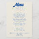 Um retro fedorento, moderno e brilhante menu de janto de casamento. Que apresenta design modelo chic de boho vintage beige leitky background e blue typografia e vintage bold menu em azul. Menu perfeito e fácil de ser editado que corresponde a toda a suíte.
