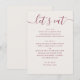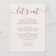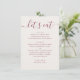 Um cartão de menu de casamento minimalista projetado para apresentar o jantar de recepção de forma clara e elegante. Situado em um fundo marfim suave com tipografia de rosa silvestre discreta, o layout combina um título em letra cursiva com seções de menu estruturadas. Cada prato é organizado para facilitar a leitura, permitindo que os convidados vejam rapidamente o que está sendo servido. O equilíbrio entre a letra cursiva e a tipografia limpa mantém o design refinado, ao mesmo tempo em que mantém um clima descontraído e acessível. Simples e bem organizado, este menu funciona lindamente para uma ampla gama de estilos de casamento, desde ambientes modernos e minimalistas até ambientes românticos e clássicos. Ele combina sem esforço com paletas neutras e decoração suave e discreta. Perfeito para recepções de casamento, mesas de jantar e outros eventos onde é necessária uma apresentação de menu clara e elegante.