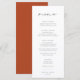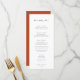 Chic Minimalista, cardápio de casamento. Desenho, tipografia negra com suporte a cor laranja do terracotta.