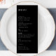Menu de casamento elegante, eterno, minimalista e clássico, com fonte serif em fundo preto