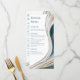 Elevem sua experiência de jantar de casamento com esses modernos Menus Jantados e Bares em refrescar tons azuis e dourados. O elegante design adiciona sofisticação à sua mesa, ao mesmo tempo que oferece uma variedade de delícias culinárias e opções de bebidas para os seus hóspedes apreciarem. Saúde a uma refeição memorável!
