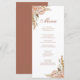 Este cardápio de casamento apresenta flores de grama de pampas com um fundo de terracota coordenado para um visual boho moderno e aconchegante. Perfeito para mesas de recepção em casamentos ao ar livre, rústicos ou boêmios. O layout vertical destaca claramente cada prato, mantendo uma estética elegante e arejada. A paleta neutra quente reflete as tendências de 2025–2026 focadas em texturas naturais e tons lavados pelo sol. O texto totalmente personalizável permite que você apresente seu cardápio de forma linda. Um detalhe refinado de mesa que completa seu conjunto de casamento com grama de pampas.