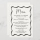 Adicione um toque vintage à sua festa de noivado, jantar de ensaio ou recepção de casamento com este menu de casamento com moldura ondulada moderna em creme e preto. O design exibe os nomes do casal, data do casamento e opções de menu em letras pretas em negrito, cercados por uma borda de moldura ondulada preta em um fundo creme. O menu de casamento retrô combina com nossa coleção de casamento com moldura ondulada moderna.