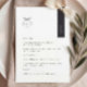 Este é o moderno menu de casamento branco e preto, que irá adicionar um toque de elegância à vossa decoração Festa de casamento. Todo texto é editável, basta clicar em 'Personalizar este modelo'. Itens correspondentes, como cartões de lugar, números de mesas e sinais de casamento também estão disponíveis.