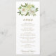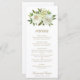 Elegante menu de casamento floral com flores pintadas a aquarelas em tons neutros de marfim, branco e champanhe junto com um pouco de verde. Todo texto está em tom dourado com o cabeçalho no script. A base tem seus nomes e data de casamento. Este cardápio de casamento sofisticado é excelente para um casamento de primavera ou verão.