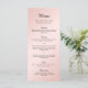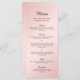 Elegante menu de casamento preto e blush com uma fonte moderna de script em um fundo de gradiente rosa-claro. Itens correspondentes disponíveis. Personalize facilmente este cardápio de casamento preto e roxo com seus detalhes de casamento.