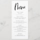 Menu folha única, tamanho: 10,16 x 22,86 cm, papel: Semi-brilho Básico