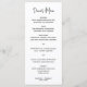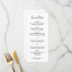 Menu de casamento moderno com um design simples com o cabeçalho em uma tipografia de script elegante e seu menu em uma fonte de sans serif minimalista. Todos os elementos design estão em preto e branco. Este cardápio chic do casamento funciona bem com qualquer estilo de casamento.