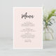 Menu Casamento moderno rosa. Mínimo simples de blush