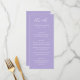 Cardápio de casamento moderno com design tipográfico contemporâneo e "vamos comer" em tipografia elegante. Abaixo estão os detalhes do seu evento com seus nomes, data do casamento e cardápio em um layout simples e minimalista. O tema de cor é roxo pervinca e pode ser alterado com a ferramenta de edição de design.