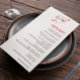 Menu folha única, tamanho: 10,16 x 22,86 cm, papel: Semi-brilho Básico