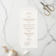 Este cartão de menu minimalista apresenta um conjunto de fontes contemporâneas em bege esticado e bege pálido, contra fundo de marfim chico. Inclui 4 seções de refeições e bebidas. A modelo inclui também um monograma casal numa combinação de esticamentos. Mais cores disponíveis na mesma coleção.