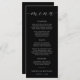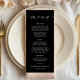 Este cartão de cardápio de casamento dá um tom romântico para sua recepção. O elegante design preto e branco apresenta um roteiro de caligrafia, criando um eterno e uma apresentação sofisticada de seus cursos deliciosos. Os convidados ficarão encantados com o belo design e ansiosos por saborear as delícias culinárias que se avizinham.