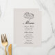 Este cardápio de casamento mostra um belo cavalo ilustrado em estilo rústico, fazer ideal para as comemorações do país e da fazenda. Projetado em tons suaves de marfim com elegante escrita preta, ele adiciona um toque de refinamento ao celeiro, equestre e casamentos ao ar livre. Adequado para eventos de outono, primavera, ou verão, este menu traz um elemento romântico e sincero à sua recepção. O motivo do cavalo acrescenta caráter eterno, perfeito para casais que apreciam beleza rural e detalhes naturais. Coordena-se lindamente com a tua suite de casamento completa.
