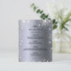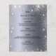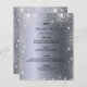 Um cartão de cardápio de casamento elegante e glamouroso. Personalize e adicione seus nomes, data e menu de casamento. Fundo metálico de aspecto fino prateado, decorado com poeira falsa brilhante.