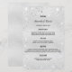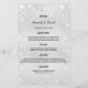 Um cartão de cardápio de casamento elegante e glamouroso. Personalize e adicione seus nomes, data e menu de casamento. Fundo metálico de aspecto fino prateado, decorado com poeira falsa brilhante.