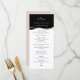 Menu de casamento moderno, com um design preto e branco e um rosa pincelado opcional.