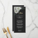 Cartão de cardápio único com flores brancas românticas e folhas verdes em fundo preto. PARA MAIS PRODUTOS CORRESPONDENTES, clique na coleção acima ou entre em contato comigo.