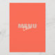 Um retro fedorento, moderno e brilhante menu de janto de casamento. Que apresenta o design modelo chic do fundo cremoso vintage e a tipografia preta e o cardápio manuscrito em laranja. E fundo laranja brilhante. Perfeito e compatível com toda a suíte.