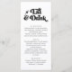Sirva o estilo "Retro Modern Black and White Eat and Drink Wedding Menu", combina o charme de vintage com o estilo moderno e contemporâneo. Apresentando um fundo branco nítido e um texto preto em negrito, este design é elegante e atraente para os olhos. Perfeito para mostrar seu menu de casamento, ele adiciona um toque de na moda à sua decoração de mesa e complementa qualquer tema de casamento retrormoderno.