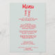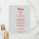 Um retro fedorento, moderno, vermelho e azul-céu, menu de janto de casamento. Que apresenta modelo de chic do fundo azul-céu e tipografia escrita vívida e vermelha-mão. Com coquetéis desenhados à mão com fitas. Perfeito e compatível com toda a suíte.