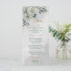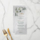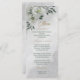 Cartão de cardápio único com flores brancas românticas e folhas verdes. PARA MAIS PRODUTOS CORRESPONDENTES, clique na coleção acima ou entre em contato comigo.