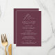 Menu de casamento simples e elegante com "Menu" exibido em um roteiro branco moderno com fundo roxo ou cor de sua escolha. Personalize o menu do casamento roxo adicionando seus nomes, data do casamento e informações do menu. Projetado para coordenar com a nossa coleção de casamento do Modern Elegance.