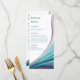 Elevem sua experiência de jantar de casamento com esses modernos Menus Jantados e Bares em matizes roxas e teais. O elegante design adiciona sofisticação à sua mesa, ao mesmo tempo que oferece uma variedade de delícias culinárias e opções de bebidas para os seus hóspedes apreciarem. Saúde a uma refeição memorável!