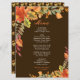 Bonito menu de casamento com folhas de outono em laranja, amarelo e verde. Perfeito para um casamento outono de outono. As palavras podem ser alteradas para se adequarem aos seus próprios detalhes ou requisitos.