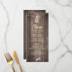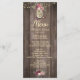 Este menu rústico apresenta um jarro de mason com rosas pintados com aquarela em fundo de madeira de celeiro. A parte de trás do menu tem um pequeno buquê de rosa no centro no mesmo fundo de madeira. Você pode clicar no botão personalizar para adicionar seu próprio menu.