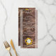 Este design apresenta girassóis russos num pano de fundo de madeira. A coroa de girassol encaixa elegantemente a data do casamento. Os tons amarelos, verdes e castanhos criam uma sensação rústica de jardim rural natural. A borda opaca destaca a peça central do girassol. Design de cardápio de casamento elegante com elementos modernos. Os convites de casamento e outros artigos de papelaria também estão disponíveis.