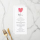 Este design apresenta um coração de aquarela rústica. A tipografia negra e o coração vermelho/laranja contrastam um com o outro. O coração pintado pela mão exibe pedaços de tinta aquosa que epitomizam paixão. Uma design romântica simples com um toque rústico. Esta design é ideal para qualquer tema de casamento. O perfeito design do cardápio de casamento. Os convites de casamento e outros artigos de papelaria também estão disponíveis.