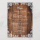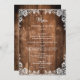 Este cardápio de casamento de madeiras rústicas e locais é uma forma encantadora e romântica de convidar convidados para o seu dia especial. Ele apresenta um fundo de madeira com sutil textura de grãos, delicados sotaques de rendas, fazer perfeito para um casamento no país ou para casais querendo uma sensação quente e íntima. Use as ferramentas de design para atualizar o texto e a fonte.