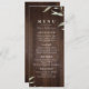 Folhas botânicas de cor aquática modernas sobre fundo de madeira de celeiro escuro, cartões de cardápio simples e elegantes, de excelente para casamento de jardim botânico rústico no outono e no inverno. Veja todas as peças correspondentes na coleção.